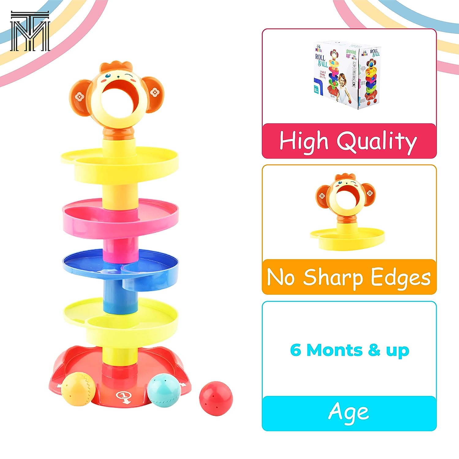 5 Layers Swirling Ball Ramp Roll Ball Toy for Baby Kids | Drop and Go Ball Stack and Toss Game with 3 Balls | Plastic | Multi Color | for Toddlers