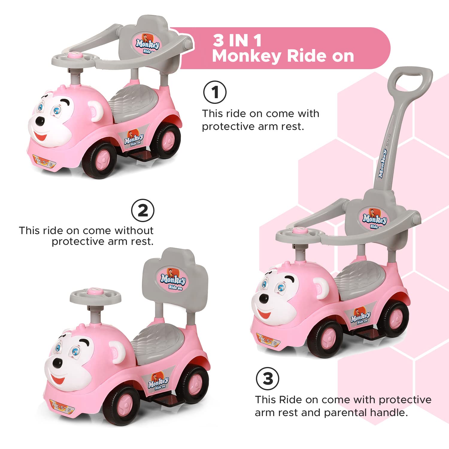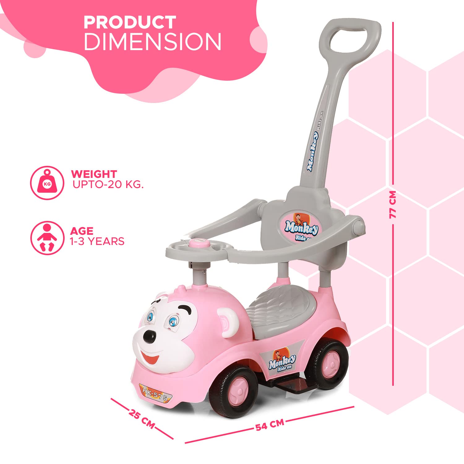 Dash Monkey 3 in 1 Ride on for Kids, Baby car, Ride on for Kids 2 Years+, Push Car, Musical Ride on car for Kids with Parental Handle