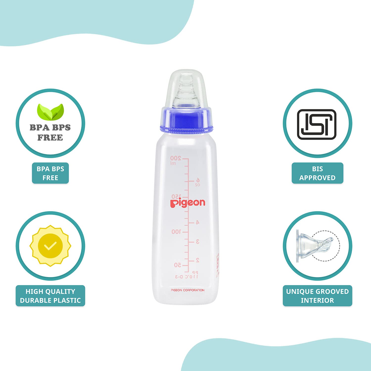Pigeon Peristaltic Baby Nursing/Feeding Bottle KPP Nipple M,For 4+ Month Babies,BPA Free,BPS Free,Blue,200 ml